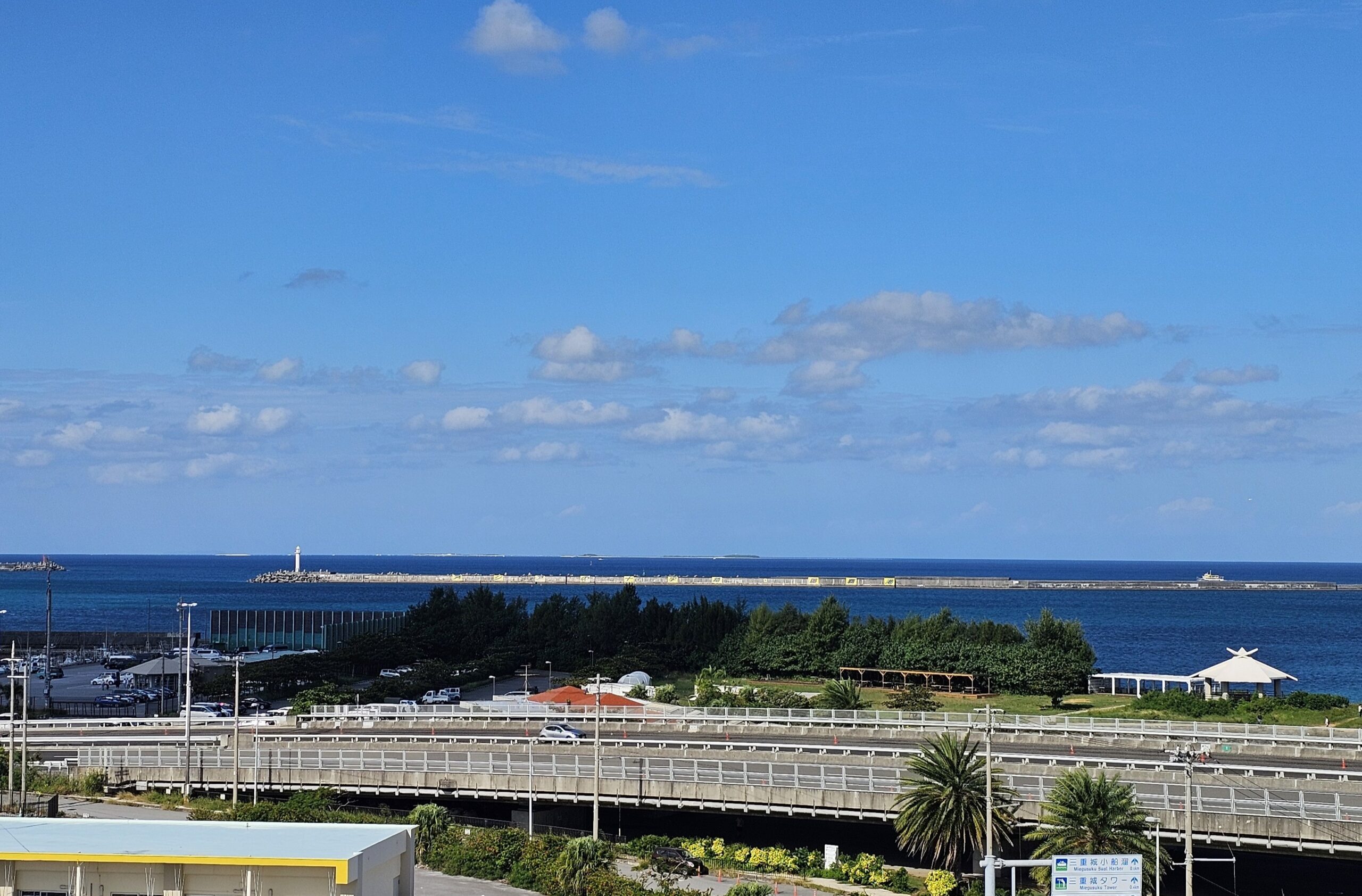 共用廊下からはオーシャンビューが広がり、潮風を感じながら一日が始まる心地よさは格別。